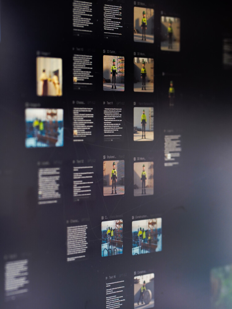 We experimenteren met diverse AI-toepassingen voor beeld, video en tekst, altijd onder creatieve regie en binnen de kaders van het merk.