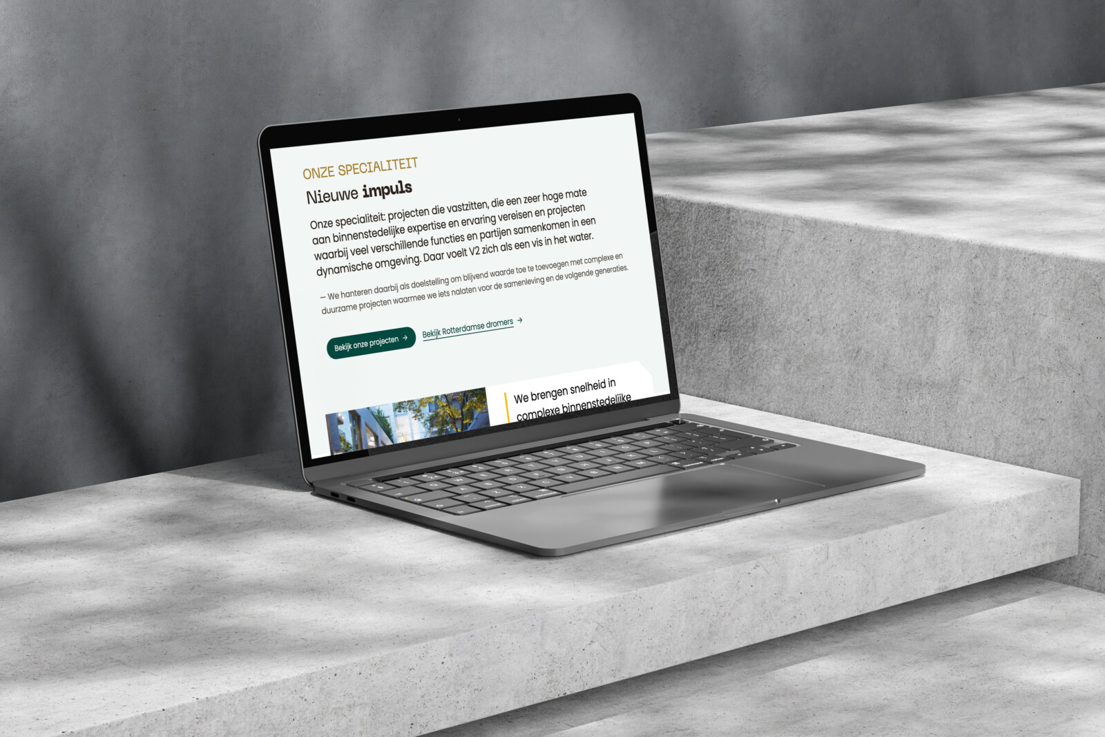 Met een heldere positionering, sterke branding en een gebruiksvriendelijke website hebben we V2 neergezet als een professionele, betrouwbare partner die projecten weer in beweging brengt, van concept tot realisatie.